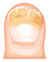 Im Anfangsstadium breitet sich ein Nagelpilz meist von der Außenkante des freien Nagelrandes über die Mitte bis hin zum Nagelwall aus.